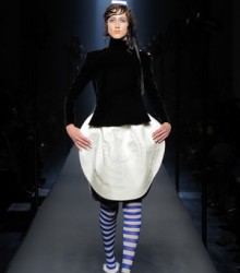 Avand in vedere ca intotdeauna a fost mai non-conformist si nu a jucat dupa reguli, mizand doar pe viziunea si talentul sau, piesa lui de rezistenta in cadrul acestei colectii viitoare este un top numit generic “Bretonniere”, o fusta rotunda cu spirale, o sapca cu aceleasi dungi orizontale. Toata tinuta este accesorizata cu ciorapi lungi pana aproape de genunchi.